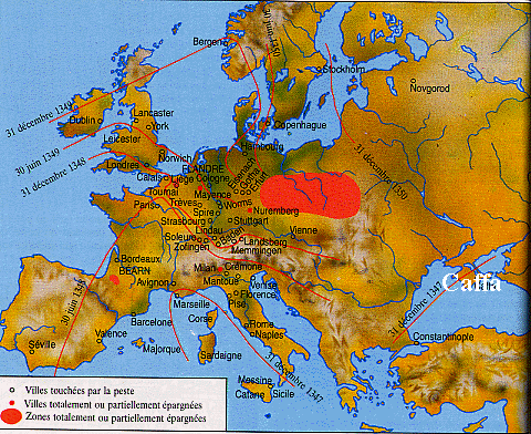 En 1349, l'épidémie gagne l'Angleterre et l'Allemagne, l'Europe centrale est atteinte à son tour.