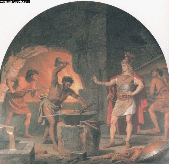 Sigurdr dans la forge de Regin, fresque réalisée par W. Von HANSCHILD, 1880.