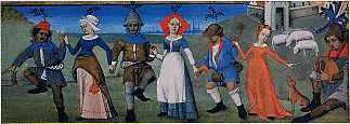 Pastoureaux et pastourelles en train de danser. (XVe siècle)